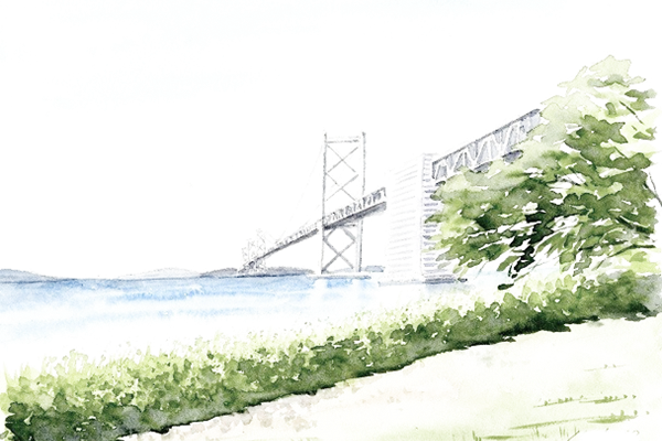 行き交う巨大船や大型フェリーの間を縫っての瀬戸大橋眺望、